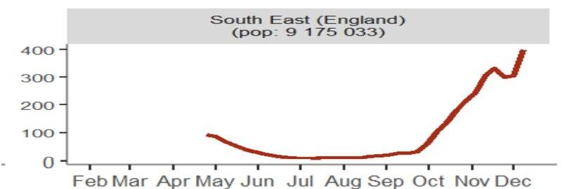 Prima di elencarle, è utile soffermarsi su un grafico, quello relativo all'andamento della curva epidemiologica proprio in quella regione. Lo stesso grafico che potrebbe contribuire a svelare l'arcano. Notiamo subito che la curva comincia a salire a settembre, fino all'impennata di ottobre.